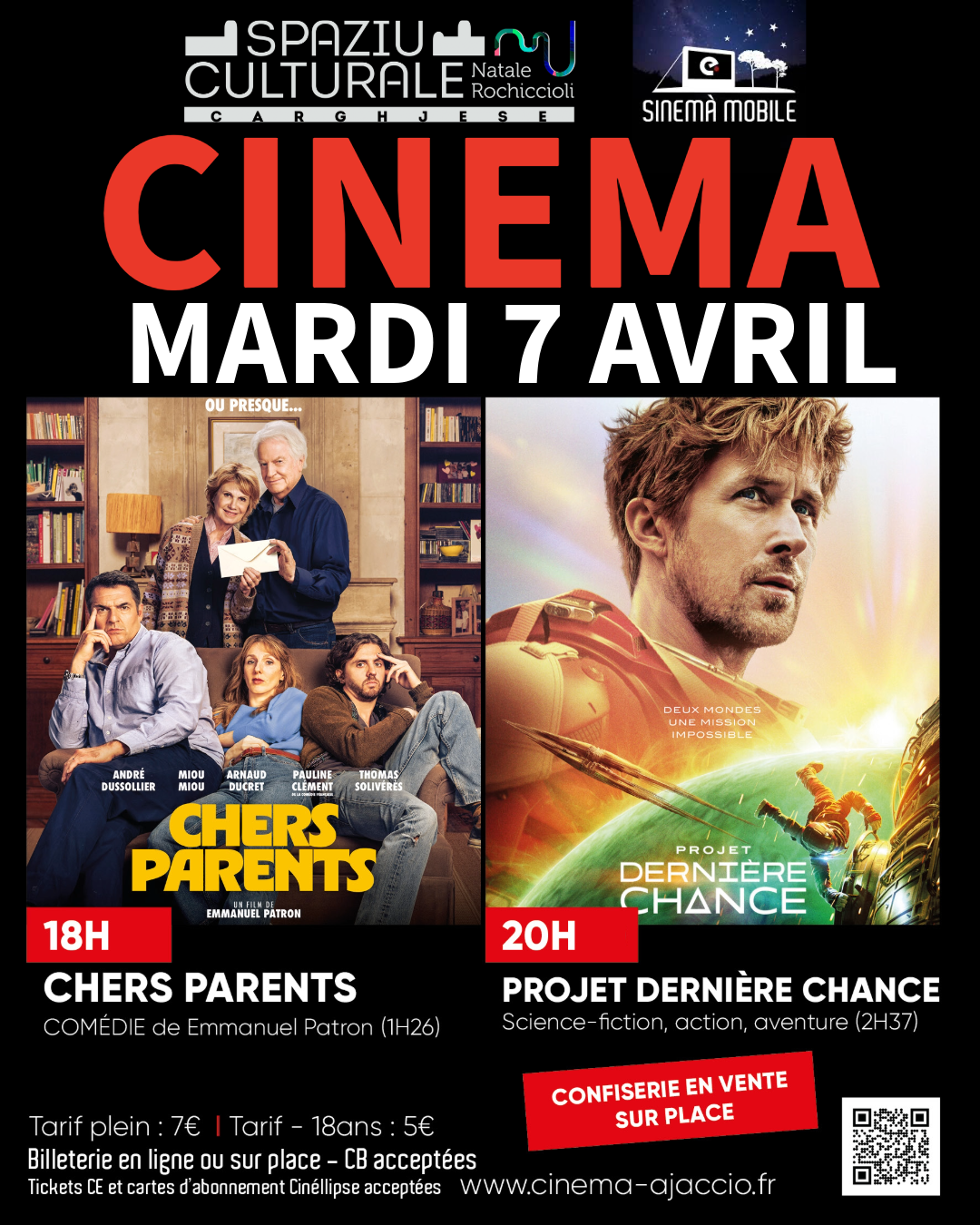 CINEMA – MARDI 7 AVRIL 2026 – Le cinéma l’Ellipse et le Spaziu Culturale Natale Rochiccioli – Carghjese -vous propose deux films :